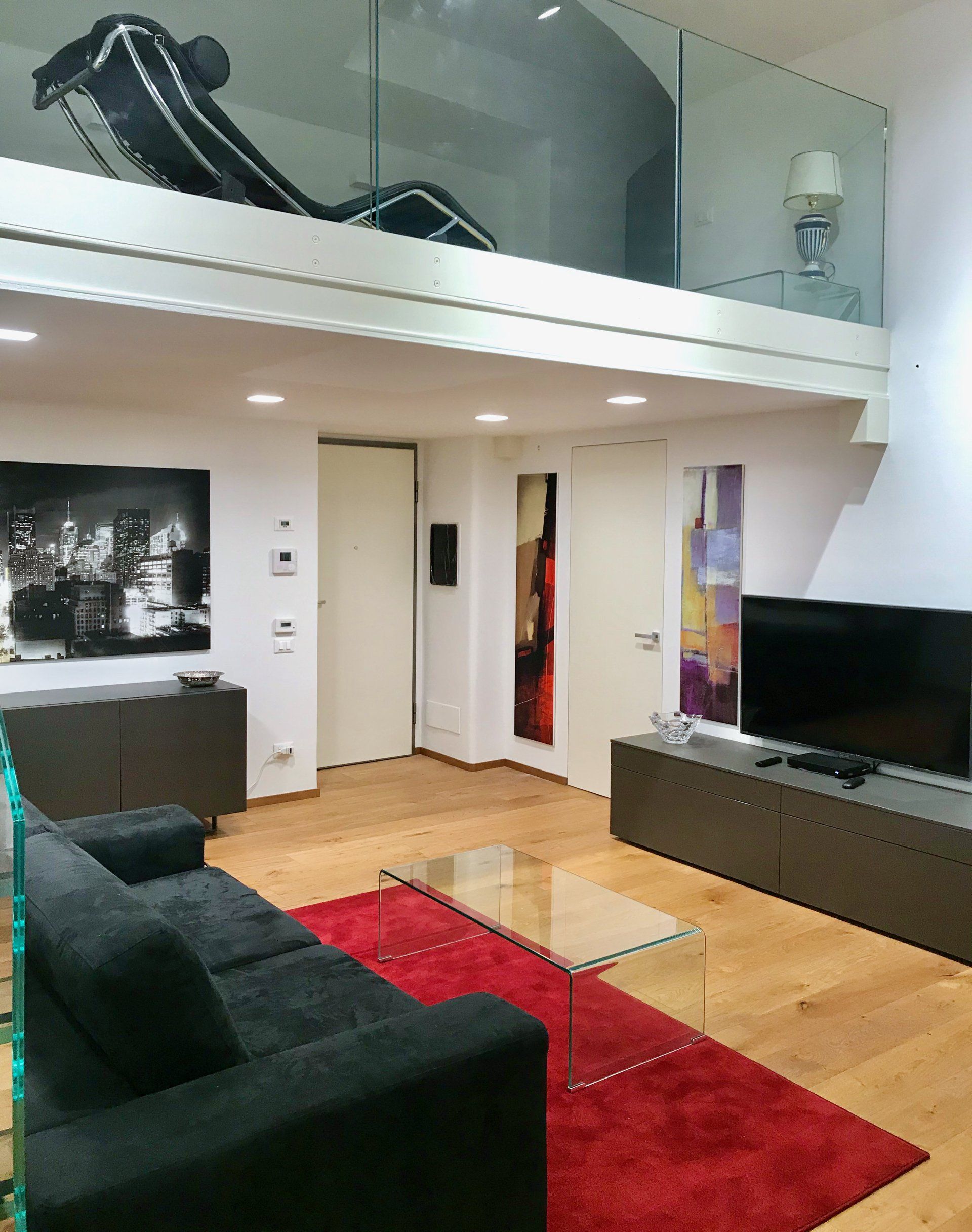 Un elegante alloggio nel cuore di Torino, con affaccio su un meraviglioso parco urbano. Il carattere dell’appartamento trae spunto dagli elementi stilistici ritrovati nella preesistenza: l'altezza ha permesso la realizzazione di zone soppalcate, dove si collocano le zone più intime della casa, una piccola oasi privata in cui isolarsi dal resto della casa senza staccarsene del tutto. I parapetti vetrati sono leggeri e trasparenti, e di certo non forniscono una barriera alla vista del bellissimo soffitto, anzi ne esaltano le altezze. Al piano terra invece, una parete vetrata scorrevole divide la cucina dalla zona giorno, dove trova spazio un bagno dalle dimensioni generose e una camera da letto. Il colore rubino, nelle sue innumerevoli sfumature, e il nero, molto apprezzato dal proprietario, conferiscono carattere alla residenza.