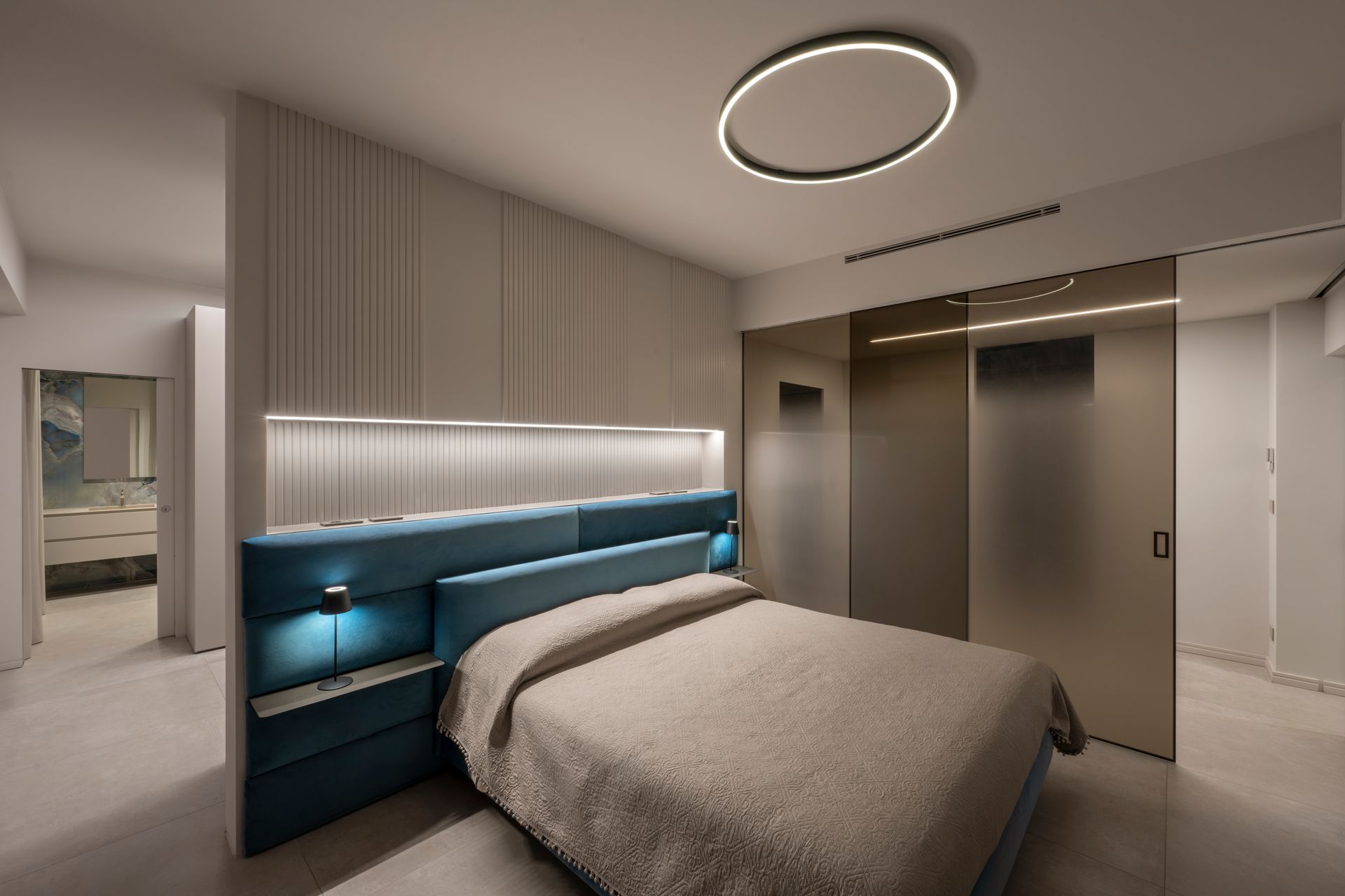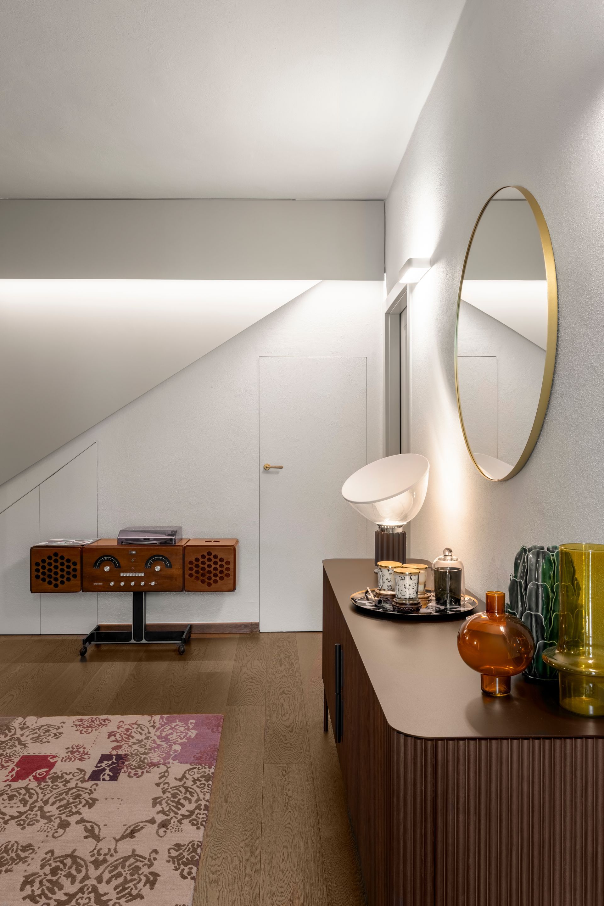 Il progetto doveva avere un filo conduttore chiaro, tutti gli spazi dovevano dialogare e armonizzarsi tra loro, motivo per cui viene utilizzato un solo colore sia per la zona giorno che per la zona notte.