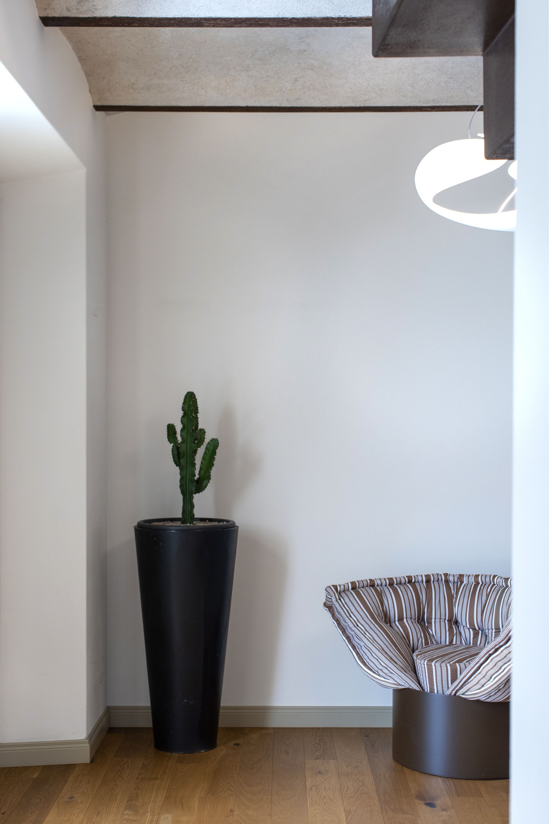 In provincia di Torino, un vecchio cascinale è diventato oggetto di rinnovamento e di ricerca di un equilibrio di stile, tra eleganza d'antan e essenzialità dell'arredo contemporaneo. La committenza (una famiglia con due figli) ha richiesto la realizzazione di una casa calda e accogliente, in cui sia ben evidente il contrasto tra la struttura classica e l’arredamento moderno. I proprietari, essendo titolari di un negozio di articoli per l’illuminazione, hanno prestato molta attenzione, durante le varie fasi del progetto, allo studio della luce naturale e artificiale.